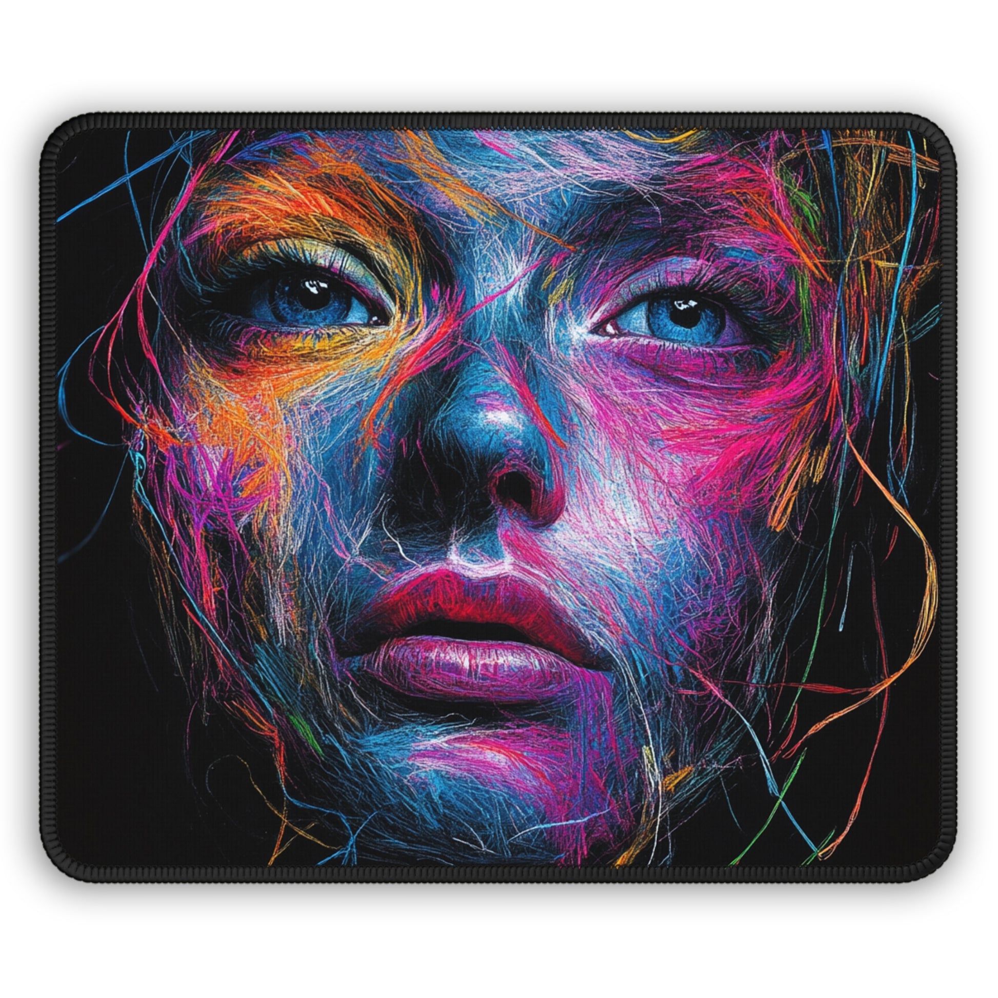 A vibrant and eye-catching mouse pad featuring a neon graphic art female face in neon colors. This mouse pad gives off a trendy and artistic vibe, perfect for gamers, digital artists, and anyone who appreciates unique designs. Ideal for adding a pop of color to your workspace or gaming setup. Great for birthdays, holidays, and special occasions.